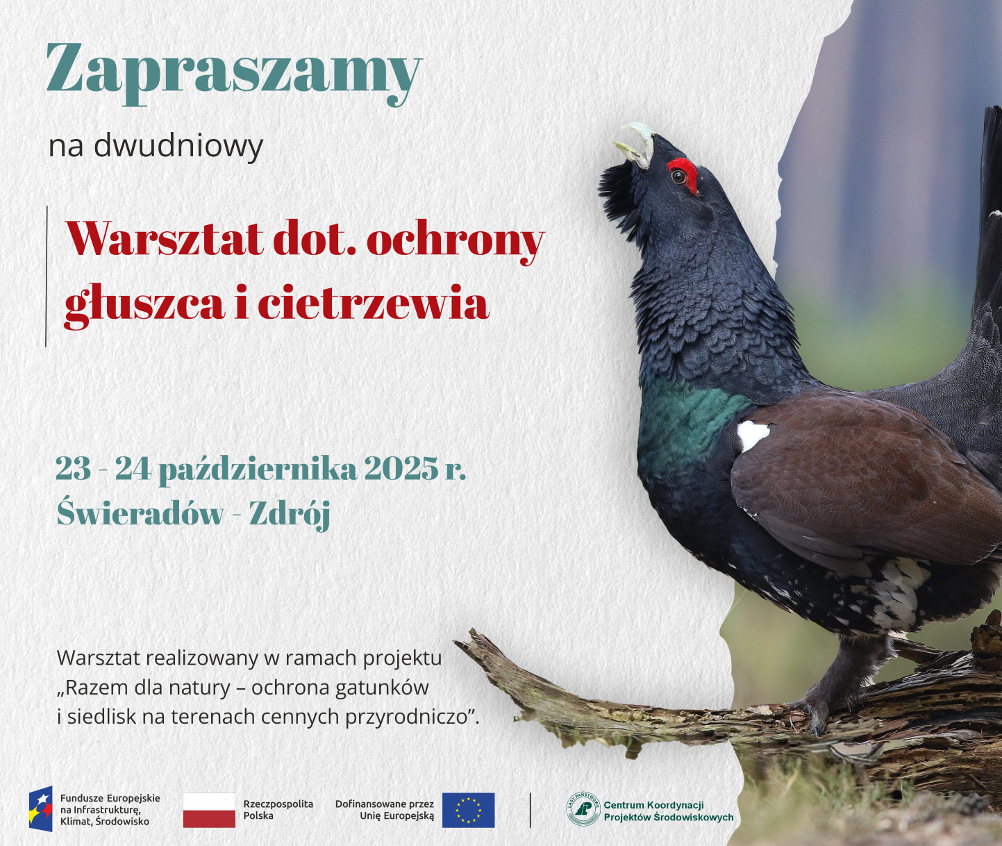 Serdecznie zapraszamy wszystkich, którym szczególnie na sercu leży ochrona głuszca i cietrzewia do zgłoszenia się na dwudniowy warsztat stacjonarno-terenowy poświęcony temu zagadnieniu.