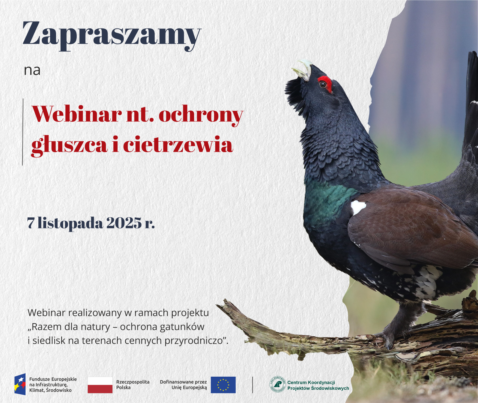 Serdecznie zapraszamy wszystkich zainteresowanych do udziału w webinarze szkoleniowym nt. ochrony głuszca i cietrzewia.
